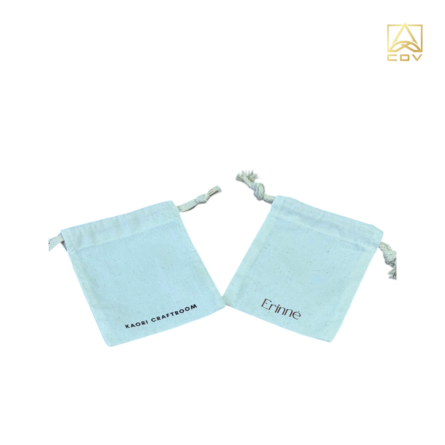 กระเป๋าหูรูดผ้าดิบ Erinne ขนาด 10×12 cm สกรีนโลโก้ 1 สี 1 ด้าน สายใช้เป็นสายคอตตอน