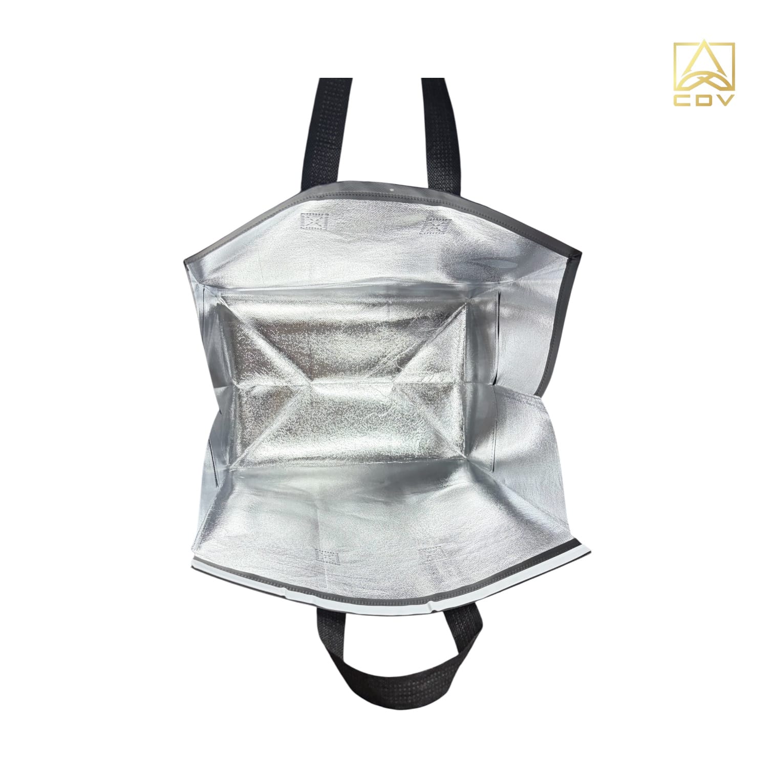 ผ้าสปันบอนด์เคลือบฟอยล์ เป็นผ้าใยสังเคราะห์ที่นำไปประกบกับฟอยล์อลูมิเนียม เพื่อเพิ่มคุณภาพให้เก็บความร้อน-ความเย็นได้นานถึง2-3ชั่วโมง กันน้ำได้ทนทานกว่าผ้าปกติ สายของตัวกระเป๋าเป็นสายผ้าสปันบอนด์สำเร็จรูป